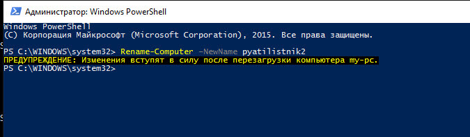 Как видите powershell еще проще чем графические методы, ввели одну команду и все он изменит имя компьютера на раз.