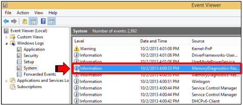 If you want to see the detailed results of the test, simply open the Event Viewer then expand the “Windows Logs” folder located at the left then click on “System”. The results of the memory diagnostic test is located under the event labeled as “MemoryDiagnostics-Results”.